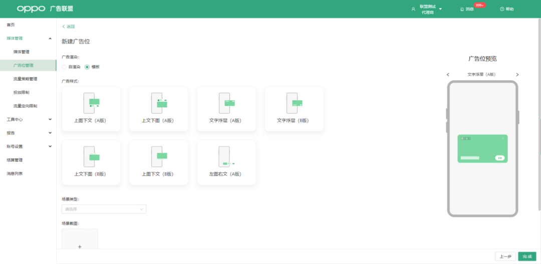 ③广告场景:选择“原生广告”