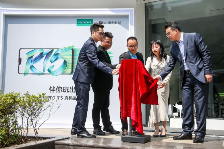 在 OPPO R15正式开售前,OPPO联合天猫小黑盒开启真机品鉴活动,让受众提前体验新品。品鉴会现场打造了杂志拍照墙、全面屏立牌等装置邀请粉丝参与互动,并提供实体机进行真机体验,还可以现场扫二维码到线上99元预定新机。